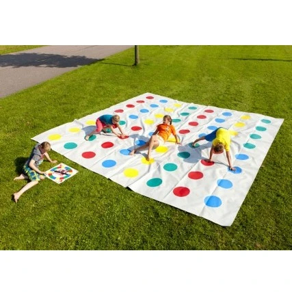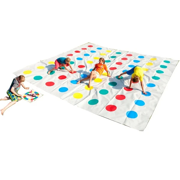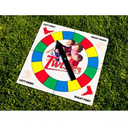 Laat de draaiwijzer draaien en roep de opdrachten. De spelers moeten het genoemde lichaamsdeel zo snel mogelijk naar de genoemde kleur stip verplaatsen. Als je met je knie of elleboog op de mat komt, of als je omvalt, ben je AF! De laatste speler die overblijft, wint Twister.