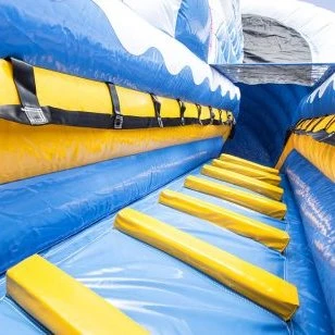 De stoere haai slide is voor een echte durfal! Bent u op zoek naar een stoere opblaasbare attractie? Dan is deze slide wat voor u! De kinderen glijden door de bek van de 3D-haai en beleven zo een heel avontuur. Met mooie full-colour prints aan de zijkanten en twee 3D-palmbomen is het thema helemaal af.