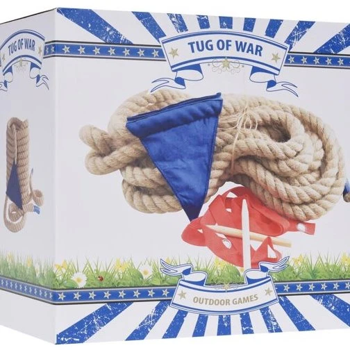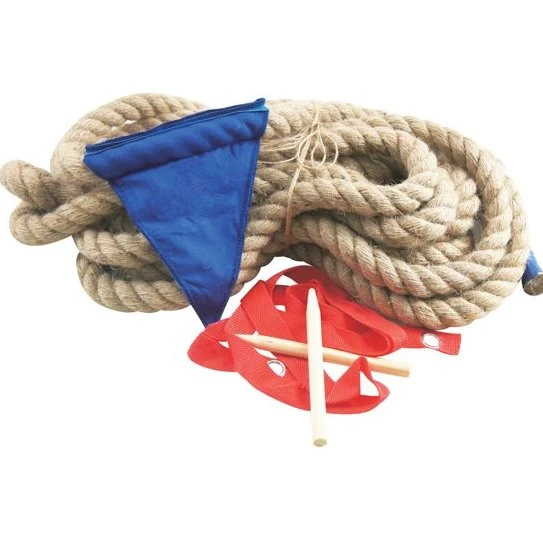Leg het touw op de grond en markeer 2 strepen op een meter van het vlaggetje. Verdeel de personen over twee teams en pak het touw op. 3, 2, 1: START!