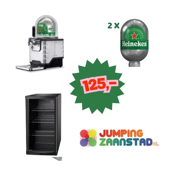 Een mooi feestpakket bestaande uit een Heineken tap, 2 fusten en een koelkast om de fusten ijskoud te houden!