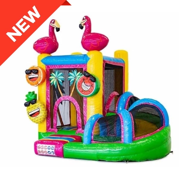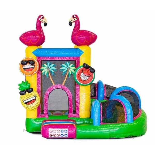 Dit vrolijke en compacte springkussen met flamingo thema is ideaal voor de kleinere kinderen. Dankzij het springvlak, gecombineerd met de originele ronde glijbaan, zullen kinderen met veel plezier springen en glijden! Uniek aan de Mini met Slide is de glijbaan die aansluit op de opstap. Kinderen kunnen makkelijk het springkussen weer in en krijgen geen vieze voeten.