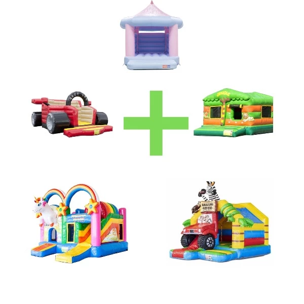 Met ons springkussenpakket kun je kiezen uit vijf verschillende kussens voor eindeloos speelplezier! Of je nu kiest voor extra grote kussens, kussens met uitdagende obstakels, of kleurrijke designs, er is altijd een optie die perfect past bij jouw evenement.