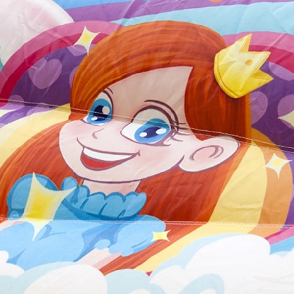 De Princess castle springkussen is voorzien van een mooie, kleurrijke animatie over de hele voorkant en de glijbaan. Dit maakt het springkussen extra aantrekkelijk voor met name de wat jongere kinderen. De rest van het springkussen is ontworpen in vrolijke kleuren, passend bij het thema.