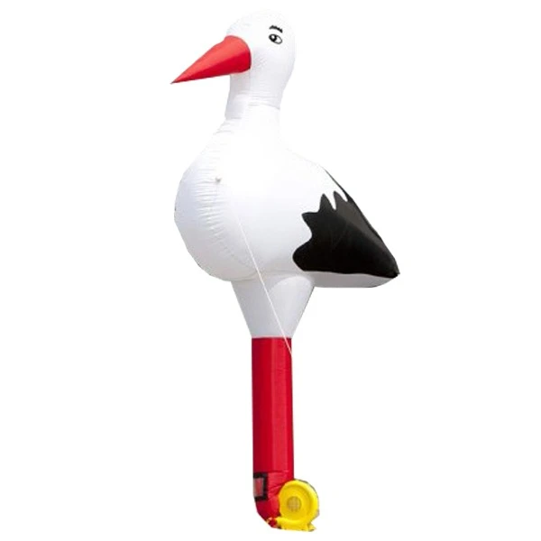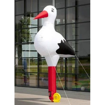 De opblaas ooievaar wordt geleverd in een handige transporttas die in elke auto past, inclusief blower, gebruiksaanwijzing en veranker materiaal. Het opzetten van de ooievaar is zeer eenvoudig en binnen 1-5 minuten gebeurd.