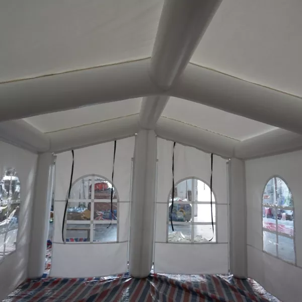 Een sterke en stabiele opblaasbare partytent die perfect is voor elk feest of evenement. Dankzij het hoogwaardige PVC zeil is de tent volledig waterdicht en bestand tegen verschillende weersomstandigheden, waardoor u altijd verzekerd bent van een droge en comfortabele ruimte.